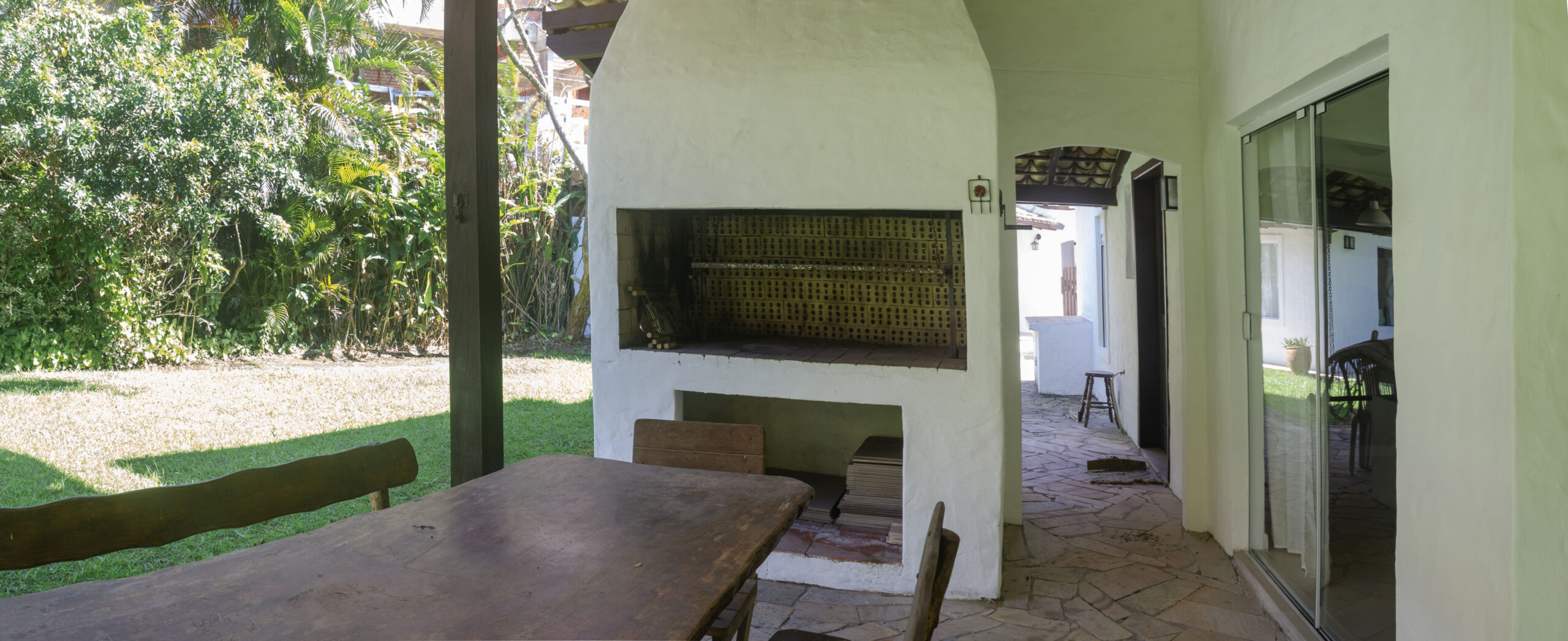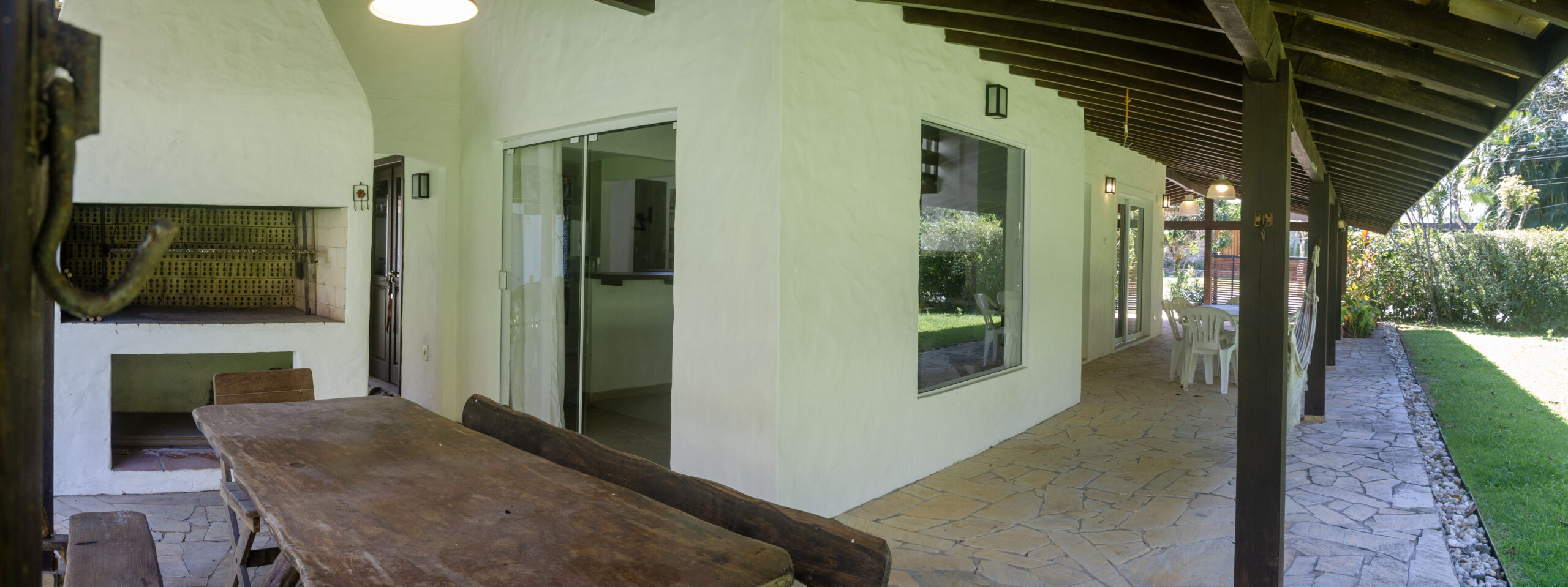 Imagine-se reunindo a família e amigos em uma varanda coberta com uma churrasqueira de
